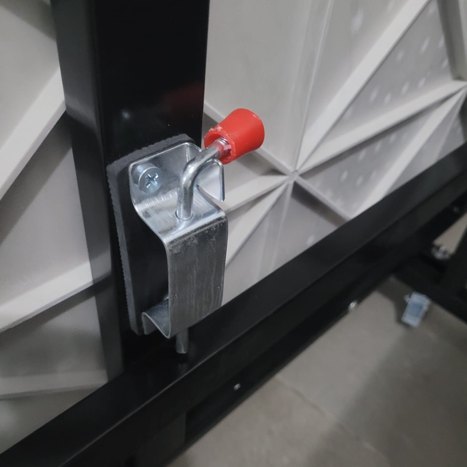 תפקידו של הפין הוא לנעול את הפלטה ברגע שמקפלים את השולחן טניס חוץ דגם Outdoor 5150 מבית Roberto Ferre. מה שגורם לשולחן להישאר למעלה. בנוסף אנחנו בדניאל פיטנס ממליצים לעגון את שולחן טניס חוץ דגם Outdoor 5150 מבית Roberto Ferre עם חבל על מנת שבימים של חורף עם סופות - השולחן עצמו לא ייפול על הרצפה.