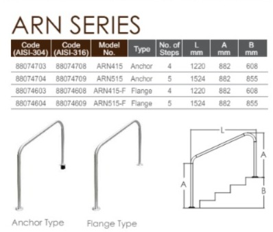 מעקה נירוסטה 316 למדרגות בריכה EMAUX ARN415-F אמוקס